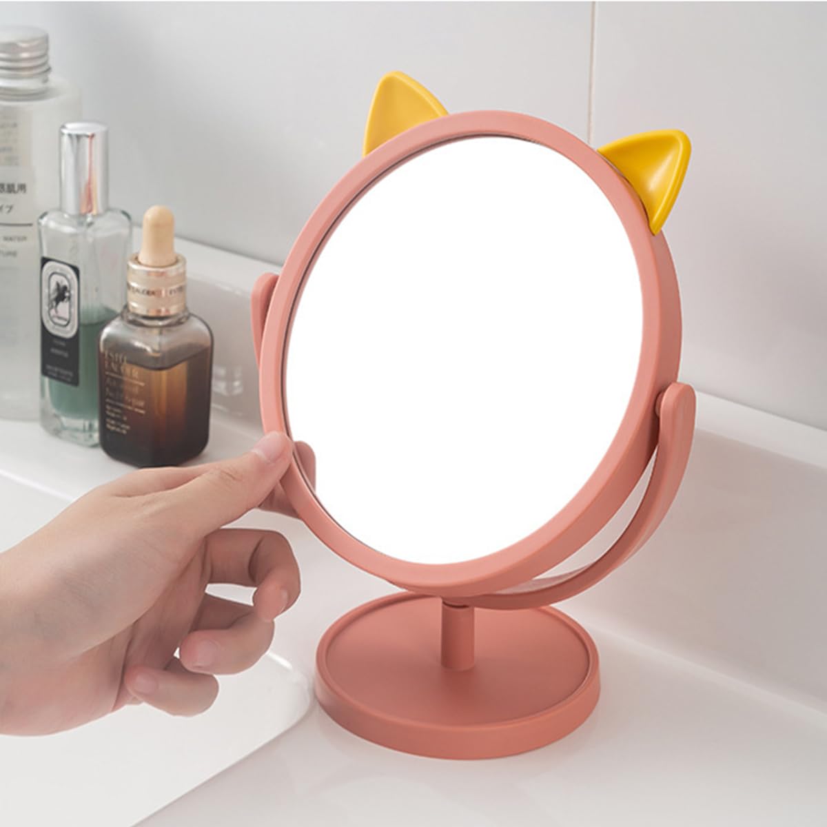 "Brand Mockery Room Type Bathroom, Bedroom, Living Room Shape Round Product Dimensions 22L x 15W Centimeters Frame Material Acrylonitrile Butadiene Styrene (ABS) Style Rabbit Ear Mounting Type Tabletop Mount Finish Type Unfinished Special Feature 360 Degree, Lightweight, Portable Colour PINK - RABBIT EAR"